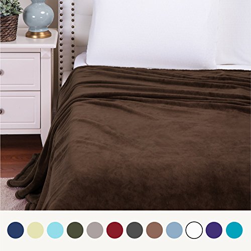 Flannel Fleece Luxury Blanket Brown Queen Size Lightweight Cozy Plush Microfiber Solid Blanket by Bedsure
