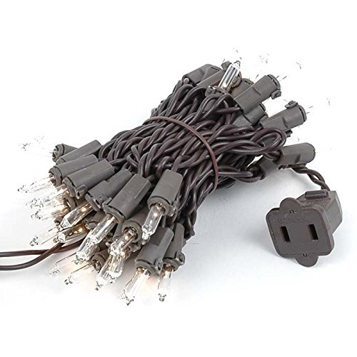Novelty Lights 50 Light Clear Christmas Mini Light Set, Brown Wire, 11′ Long