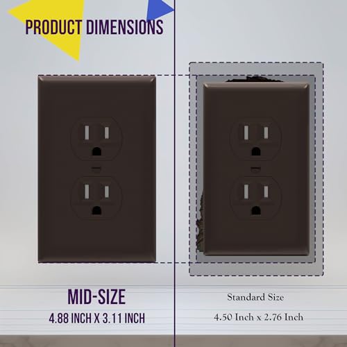 ENERLITES Duplex Receptacle Outlet Wall Plate, Gloss Finish, Midway Size 1-Gang 4.88″ x 3.11″, Unbreakable Polycarbonate Thermoplastic, UL Listed, 8821M-BR-10PCS, Brown (10 Pack)