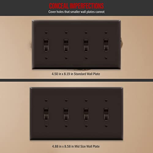 ENERLITES Quad Light Switch Wall Plate, Toggle Switch Plate, Gloss Finish, 4-Gang Mid-Size 4.88″ x 8.58″, Unbreakable Polycarbonate Thermoplastic, 8814M-BR, Brown