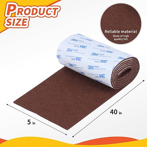 Felt Furniture Pads, Non Slip Self Adhesive Cuttable Felt Tape Brown Heavy Duty Felts Strip Roll for Protecting Hardwood Floors Chair Wall Protector (40 x 5 x 0.12 Inch)