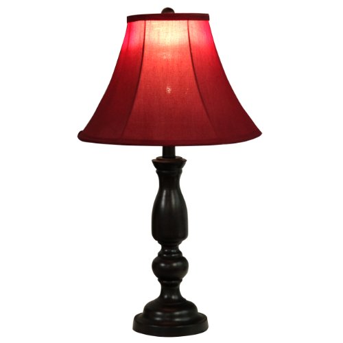 Home Source Industries LMP10788B Traditional Table Lamp with Red Fabric Shade, 25-Inch Tall, Deep Brown