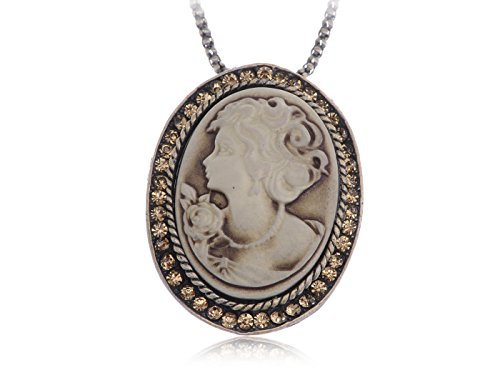 - UNIQUE DESIGN – Chain necklace featuring a cameo charm of a woman and light topaz colored rhinestones on a painted cream stone.