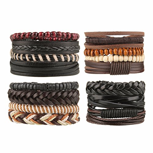 Home » Jewelry » Beauty7 5-16 PCS Mixed Genuine Cowhide Leather Bracelet Men Women Braided Adjustable Multi-layer Ethnic Tribal Wrap Bracelet Wood Bead Hemp Cord Cuff Wristband