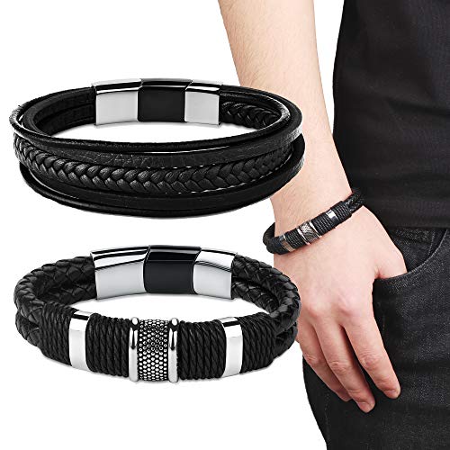 Home » Jewelry » Besteel 2 Pcs Leather Multi-Layer Cuff Bracelets for Men Stainless Steel Magnetic-Clasp Cool Braided Wrist Bracelet
