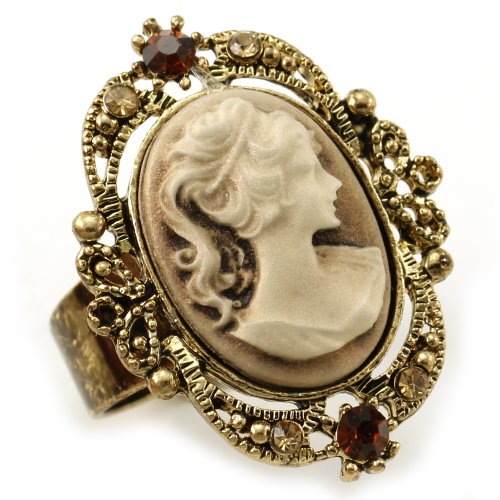 Light Brown Cameo Ring Adjustable Size Band Women Lady Fashion Jewelry