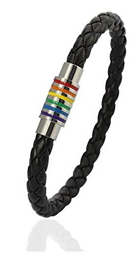 Home » Jewelry » Nanafast Titanium Stainless Steel Magnet Rainbow LGBT Pride Handmade Braided Bracelet PU Leather Weave Plaited Jewelry