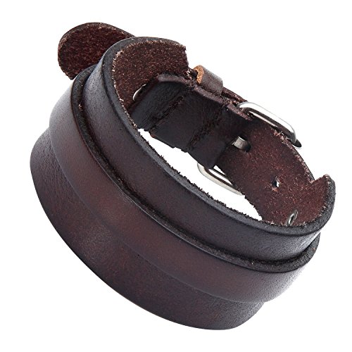 the Urban Jewelry Stunning Adjustable Dark Brown Cuff Genuine Leather Bracelet for Men with Metal Buckle Clasp