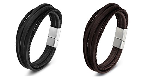 Zen Styles Men’s Leather Bracelet, Multi-Strand Braided Cuff Bracelet, Stainless Steel Magnetic Clasp, Premium Quality