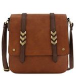 Double Compartment Large Flapover Crossbody Bag with Colorblock Straps Brow…