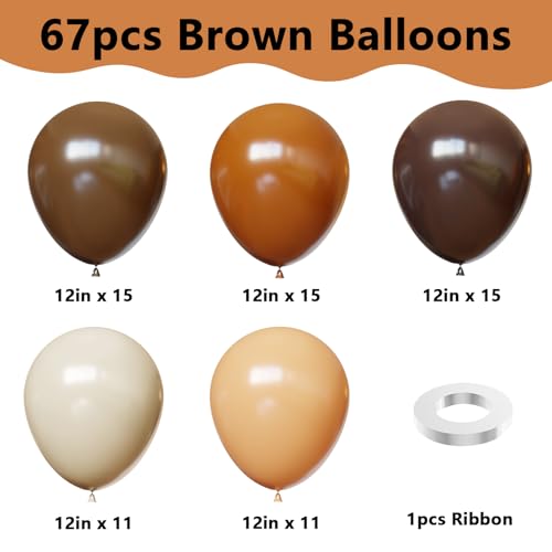 Brown Balloons, 67pcs Neutral Balloon Set, Dark Brown and Sand White Balloons, Tan Cocoa Coffee Beige Nude Latex Balloon for Neutral Bear Baby Shower Birthday Bridal Shower Party Decorations