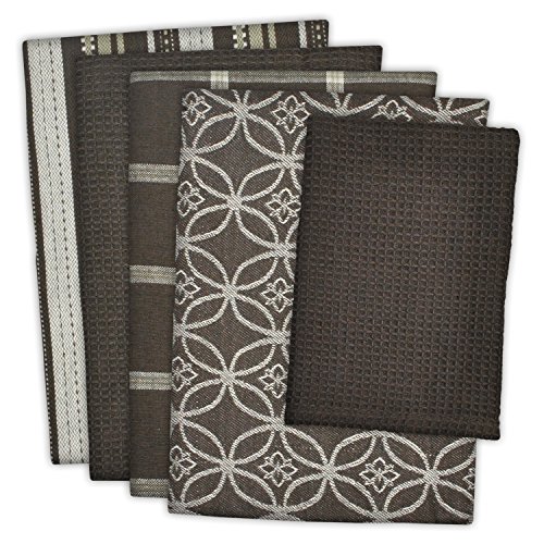 DII 100% Cotton, Ultra Absorbent, Oversized, Washing, Drying, Basic Everyday Kitchen Dishtowel 18 x 28″ & Dishcloth 13 x 13″, Set of 5 – Dark Brown