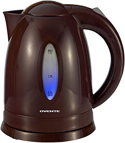 Ovente 1.7L BPA-Free Electric Kettle, Fast Heating Cordless Water Boiler with Auto Shut-Off and Boil-Dry Protection, LED Light Indicator, Brown (KP72BR)