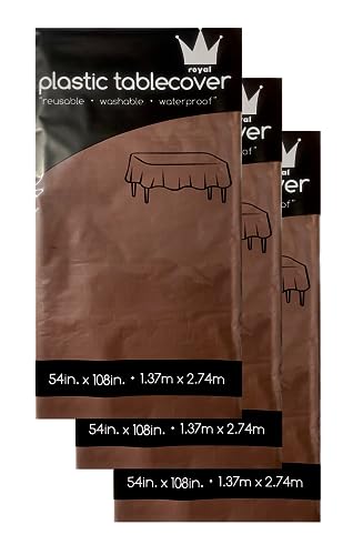 ROYAL7 3 Pack Brown, Rectangle Disposable Plastic Tablecloth for Picnic, Birthday, BBQ, Party, Wedding (Brown, Rectangle, 54in. X108in.)