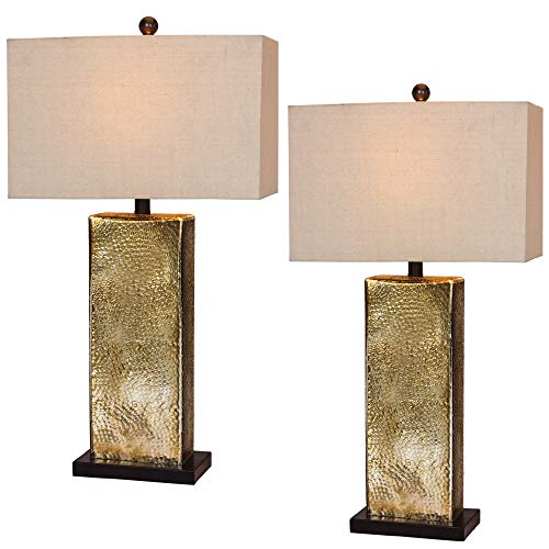 Two luxury lamps without paying a luxury price! Fangio Lighting’s #5154-2pk 29.5 in. Hammertone Brown Mercury Glass & Antique Brass metal pillar table lamps is sure to instantly charm. Attention to detail can be found in the striking look and stunning design that will add a subtle modern flare to your favorite space. Mercury glass & antique brass are among the most desired in homes today! each lamp includes a designer shade made in a décor friendly hue of oatmeal. Each light comes complete with an easy to use 3-way switch. This Collection takes 2 bulbs, each with a maximum wattage of 100 (not included.) each lamp is UL and CSA listed. Showcase your discerning tastes brilliantly with this pairing. The stylized, hammertone pillar look possesses its own presence while illuminating your exquisite decorating tastes. If you enjoy the graceful lines of transitional designs or the inspiring look of modern forms, this is the set for you! bring these items home! you will be glad you did