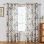 MYSKY HOME Floral Curtains for Living Room Linen Look Semi Sheer Vertical L…