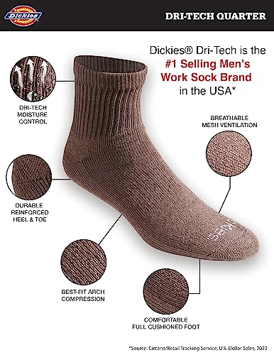 Dickies Men’s Dri-tech Moisture Control Quarter Socks Multipack, Essential Worker Brown (6 Pairs), Shoe Size: 6-12