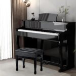 FILISITE Adjustable Height Piano Bench Stool PU Leather Cushion Wooden Keyb…