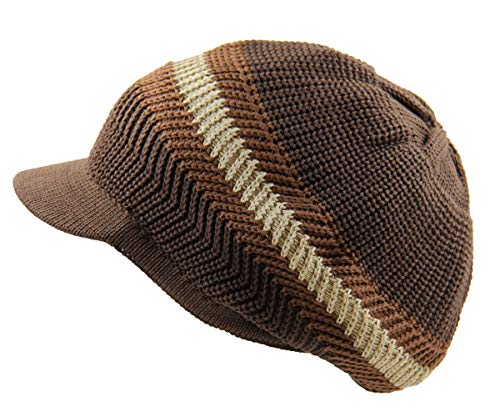 RW Knitted Cotton Rasta Slouchy Beanie Visor (Brown/Khaki)
