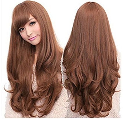 Women’s Long Hair Wig Long Wavy Cosplay Hair With Oblique Bangs?brown?