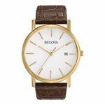 Bulova Men’s 97B100 Gold-Tone Stainless Steel Watch With Brown Leathe…