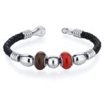 Peora Red and Brown Roundel Bead Woven Leather Bracelet