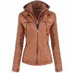 Newbestyle Women’s Faux Leather Moto Biker Jacket Removable Hoodie Zipper C…