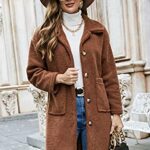 Angashion Women’s Fuzzy Fleece Lapel Open Front Long Cardigan Coat Fa…