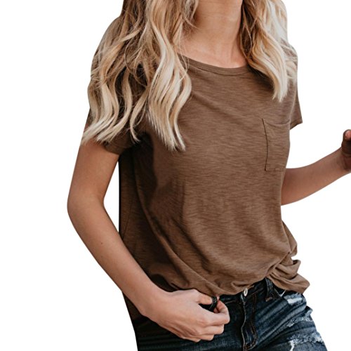 Home » Musical Instruments » Hemlock Pure Color Tees Blouse Women T Shirts Short Sleeves Round Neck Slim Tops (M, Brown)