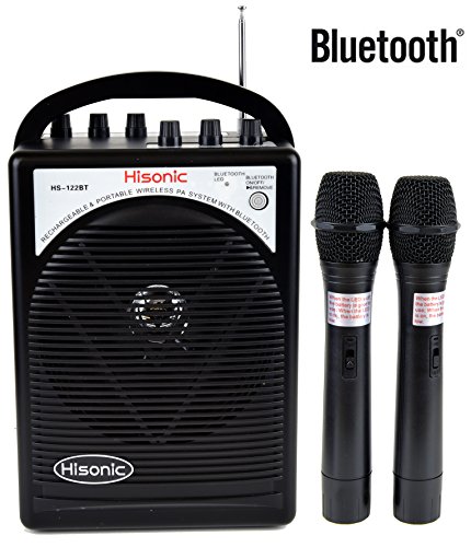 HISONIC HS122BT-HH Portable PA System with Dual Channel Wireless Microphones (Two handheld), Lithium Rechargeable Battery, Bluetooth Streaming Music From your Cell Phones, Black