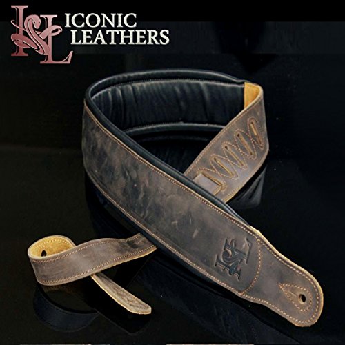 Iconic Leathers 3.25″ Wide Lightly Distressed Dark Brown Dual Padded Leather Guitar and Bass Strap IL-5DBrn