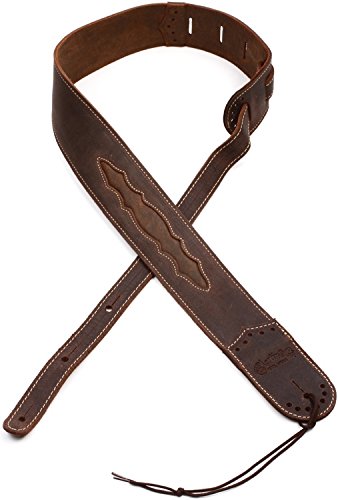 Iconic Leathers 3.25″ Wide Lightly Distressed Dark Brown Dual Padded Leather Guitar and Bass Strap IL-5DBrn