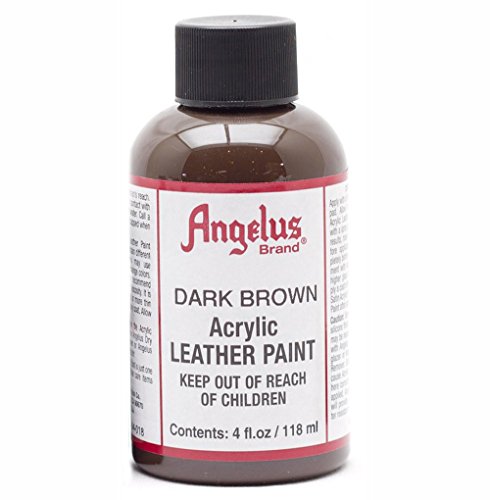 Angelus Brand Acrylic Leather Paint is the ideal paint to touch up or customize any athletic shoes, boots, jackets, purses, saddlery, tack, and more! Flexible paint that will not crack, peel, fade, or rub off. Non-toxic and water-based make these easy to clean up and easy to use. Colors can be blended together to create even more unique shades- go ahead, mix standard colors with metallic and create a one-of-a-kind color. Can be applied with a brush, sponge, or airbrush- thinner recommended for air applications. 4 ounce bottle – Dark Brown