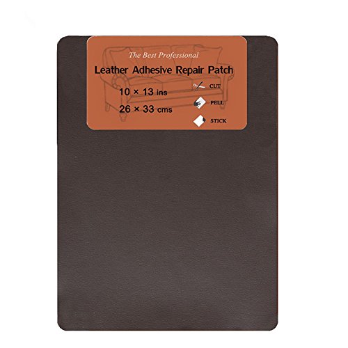 Leather Repair Patch, First-aid Leather & Vinyl Adhesive Repair Patch for Sofas Car Seats, Handbags Jackets, Plain 10-inch by 13-inch, Dark Brown