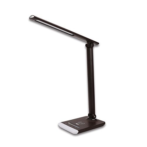 Wilit LED Desk Lamp with Wireless Charging Pad Dimmable 5-Level Dimmer 3 Color Temperatures Touch Control Full Color Changing LED Night Light Eye-Caring Table Lamps Memory Function (Brown)