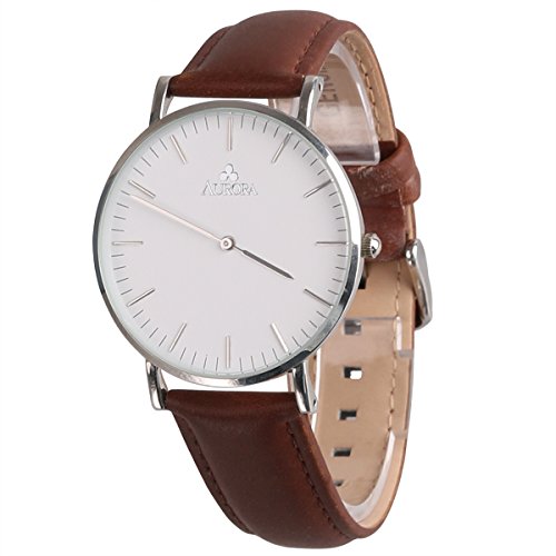 An understated Aurora watch features an eggshell white dial with silver case and light brown leather band Classic, elegant and bold,the Aurora Quartz Analog Watch was carefully designed to stand the test of time while maintaining its effortless...