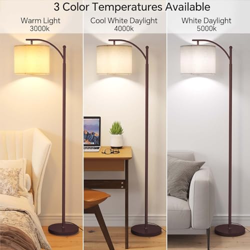 Click for More Images 3 Color Temperature LED Bulbs Included: SUNMORY Modern Floor Lamp includes a 9 watt, 800 lumen, LED E26 bulb.This arc floor lamps bulb has 3 color temperatures that can be adjusted: 3000K/4000K/5000K. You only need to press...