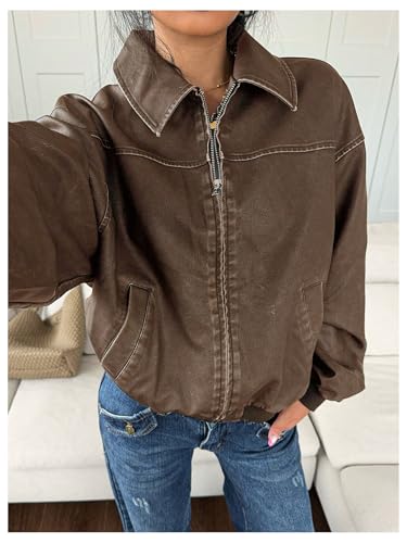Click for More Images Made of soft, lightweight fabric, provide you a good wearing experienceFeatures: Jackets for women, zipper, drop shoulder, long sleeve, bomber jacket, showcasing a youthful and casual styleOccasion: Great choice for casual,...