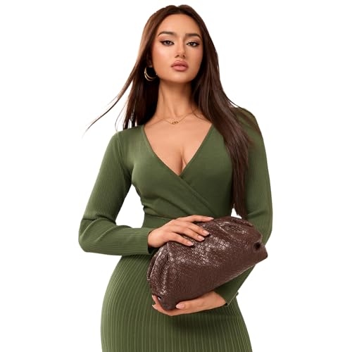Click for More Images Elegant Woven Evening Bag – This women’s dumpling clutch purse features a stylish woven texture with a ruched pattern, offering a modern and chic look for any evening outfit.PU Leather Clutch – Crafted from...