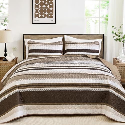 Click for More Images Striped Design:Brown quilt unlike traditional bohemian style, this quilt set is printed with striped design, with a modern and fashion design that can brighten your home with a clean and fresh look.What's included:King size...