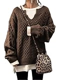 chouyatou Women’s Winter Chunky V Neck Long Sleeve Loose Cable Knit Sweater Pullover (Medium, Brown)