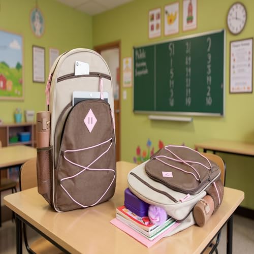 Click for More Images 4 POCKET BUNGEE CORD BACKPACK: Colorful backpack has 4 organizer pockets to keep all you need for class, work, hiking, or camping, while bungee cord front is perfect for holding maps, class projects, coats, exercise mats, &...