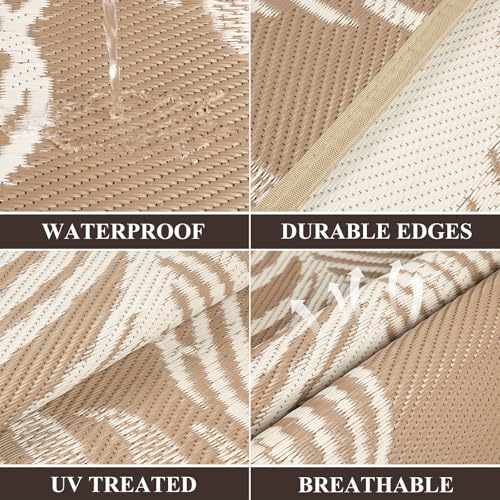 Click for More Images Reversible Design: Pauwer outdoor rugs feature classic leaf pattern on both sides, allowing you to refresh your patio with a simple flip. Perfect outdoor patio balcony decor adds charm and elegance to your outdoor...