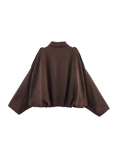 Click for More Images Material: Trendy faux suede bomber jacket for women,crafted for comfort and casual style, is constructed from high-quality polyester and other materialsFeatures: Oversized Faux Suede Streetwear Pilot Jacket featuring lapel...
