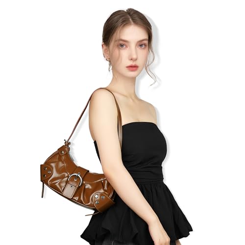 Click for More Images Premium Vegan Leather & Compact Design: Made from high-quality vegan leather, this brown purse measures L:9in, W:2.36in, H:5.12in, offering ample storage for essentials like your phone, cosmetics, keys, and sunglasses....