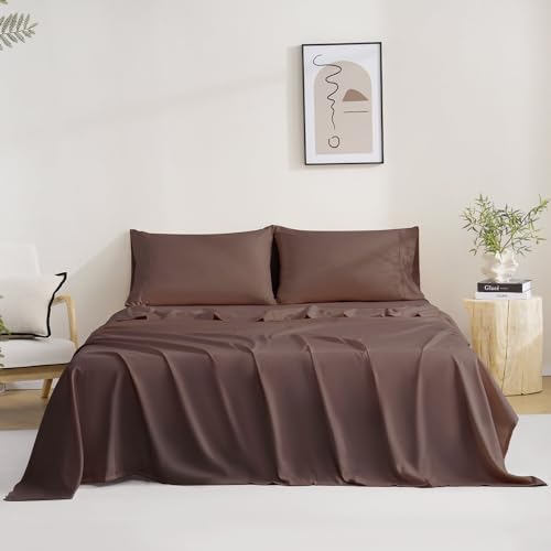 Click for More Images COOLING & BREATHABLE COMFORT - Elevate your sleep experience with our premium bedding set. The thinner sheet set is lightweight and breathable. Our sheets set are crafted to keep you cool and refreshed. The sheets' natural...