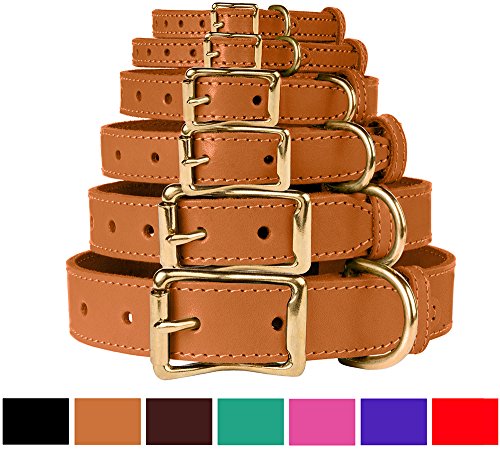 - Genuine leather collar for dogs and puppies with solid brass hardware. Comfortable collars are strong and durable, soft & adjustable. These stylish collars may fit dogs of small, medium and large breeds.