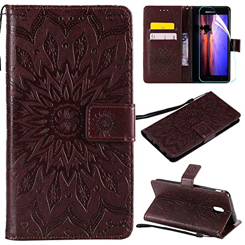 Galaxy J7 2018 Case with Screen Protector,For Samsung Galaxy J7 Aero/J7 Star/J7 Top/J7 Crown/J7 Aura/J7 Refine/J7 Eon Case Flip Case,PU Leather Mandala SUN Flower Wallet Case with Card Slots Brown