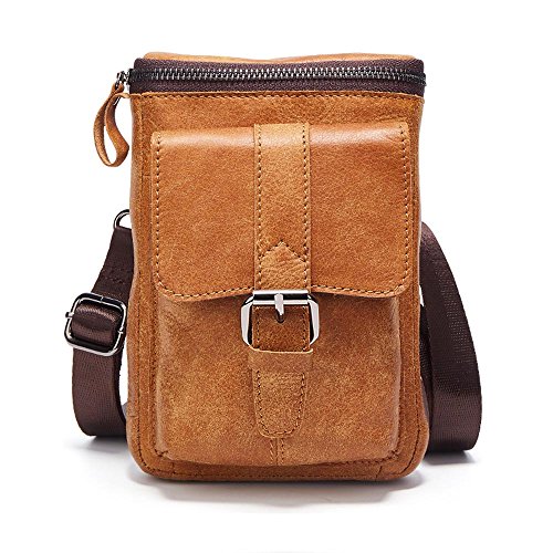 Premium Cowhide Leather Belt Holster Fanny Small Messenger Bag Pack for iPhone 7 Plus 8 Plus Holster Waist Bag Travel Shoulder Bag Crossbody Bag for iPhone 6 Plus Cell Phone Samsng LG Phones Brown