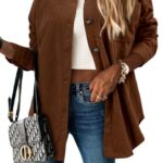 ZOLUCKY Womens Corduroy Shacket Long Sleeve Button Down Shirts Casual Boyfr…